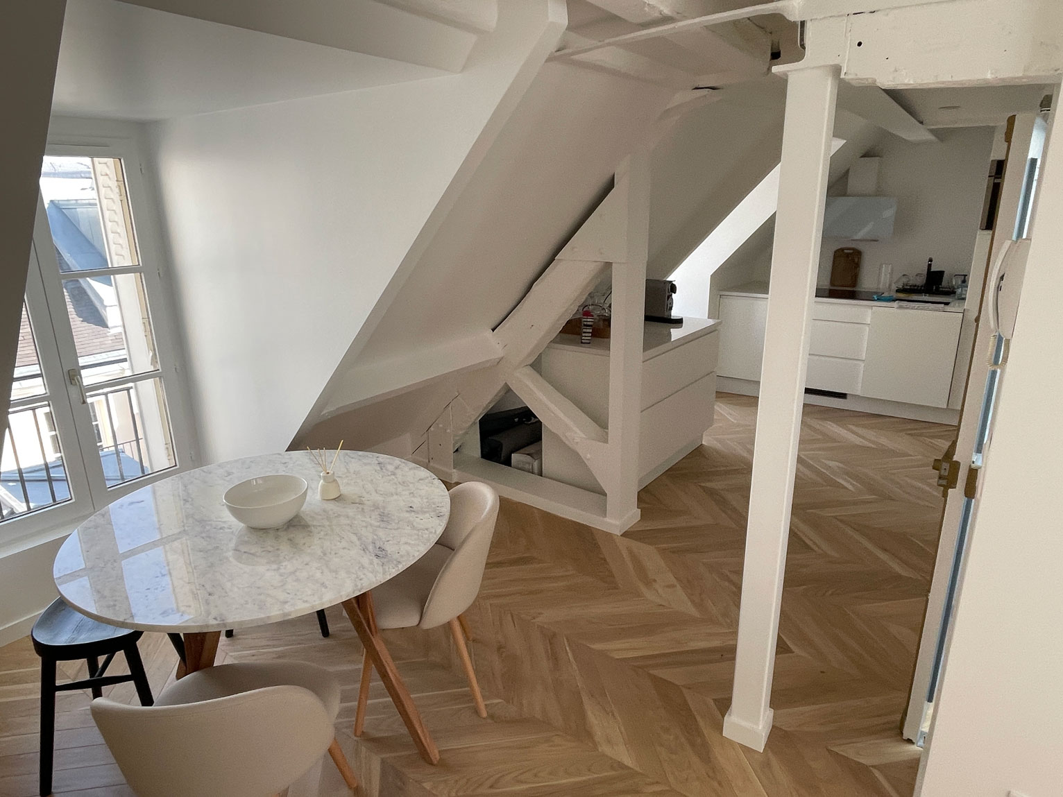 Dans une petite copropriété de 10 logements, magnifique appartement en plein centre du quartier Montorgueil de 45 m2 en dernier étage avec ascenseur. L’appartement à été entièrement refait a neuf avec des prestations et matériaux haut de gamme (chauffage climatisation, cuisine équipée, parquet…).